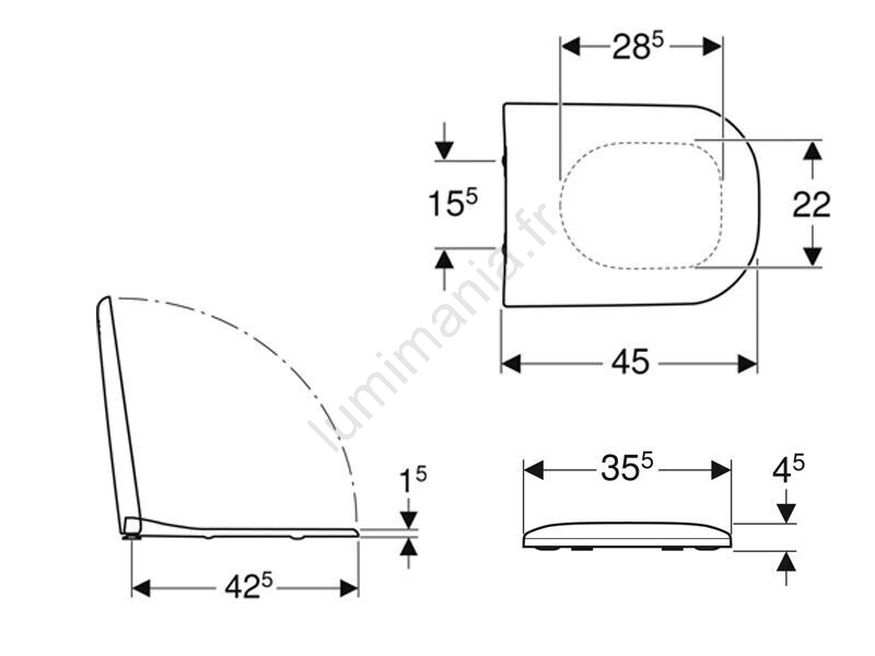 • Il est doté d'une fermeture automatique (soft-close) et recouvre parfaitement le couvercle des WC.