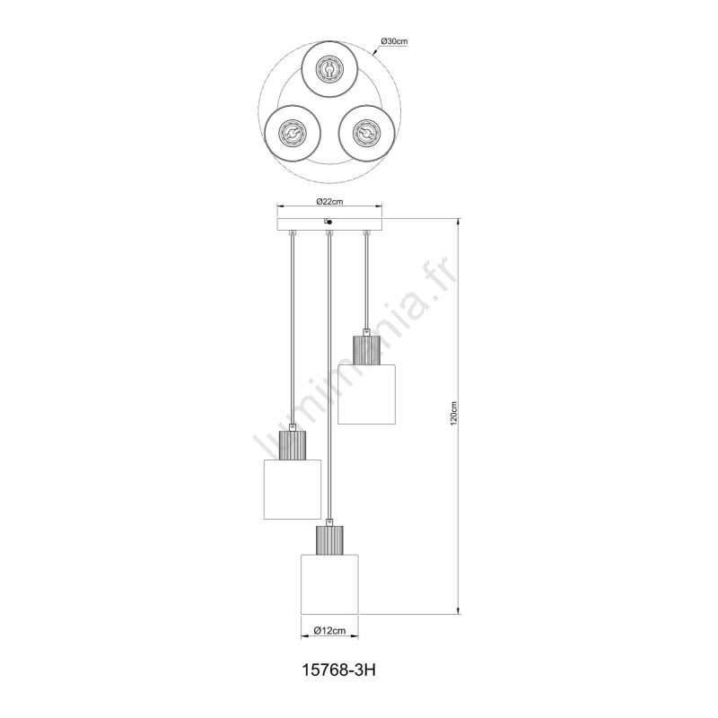 Globo - Suspension sur câble 3x E27/25 W/230 V, Ø 30 cm