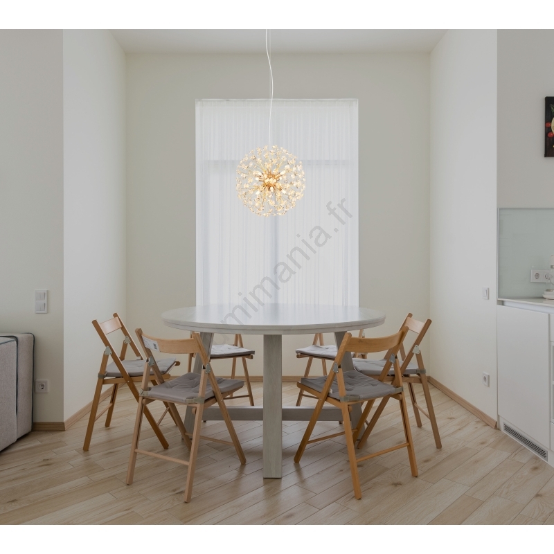 Globo - Lustre LED suspendu sur câble 8xG9/3,5W/230V Ø 40 cm doré caractérise un design agréable et fonctionnel.  Une ampoule à culot G9 convient pour ce luminaire. Ici, vous pouvez acheter d'autres ampoules à des prix avantageux. Vous aurez un ajout intéressant dans votre intérieur.