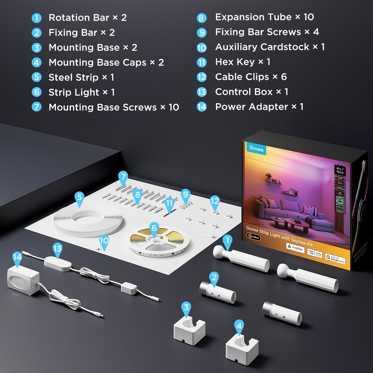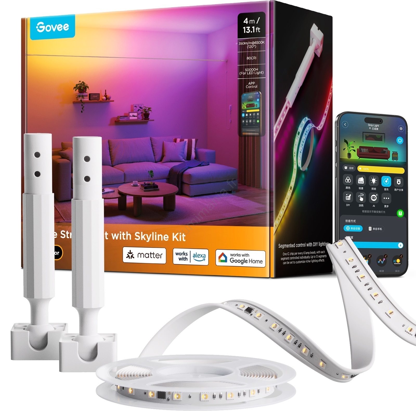 • Govee - Ruban LED suspendu RGBICWW 36W/24V 4 m Skyline Matter Wi-Fi