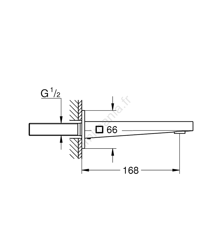 • Portée de 168 mm pour une projection d'eau optimale dans la baignoire.