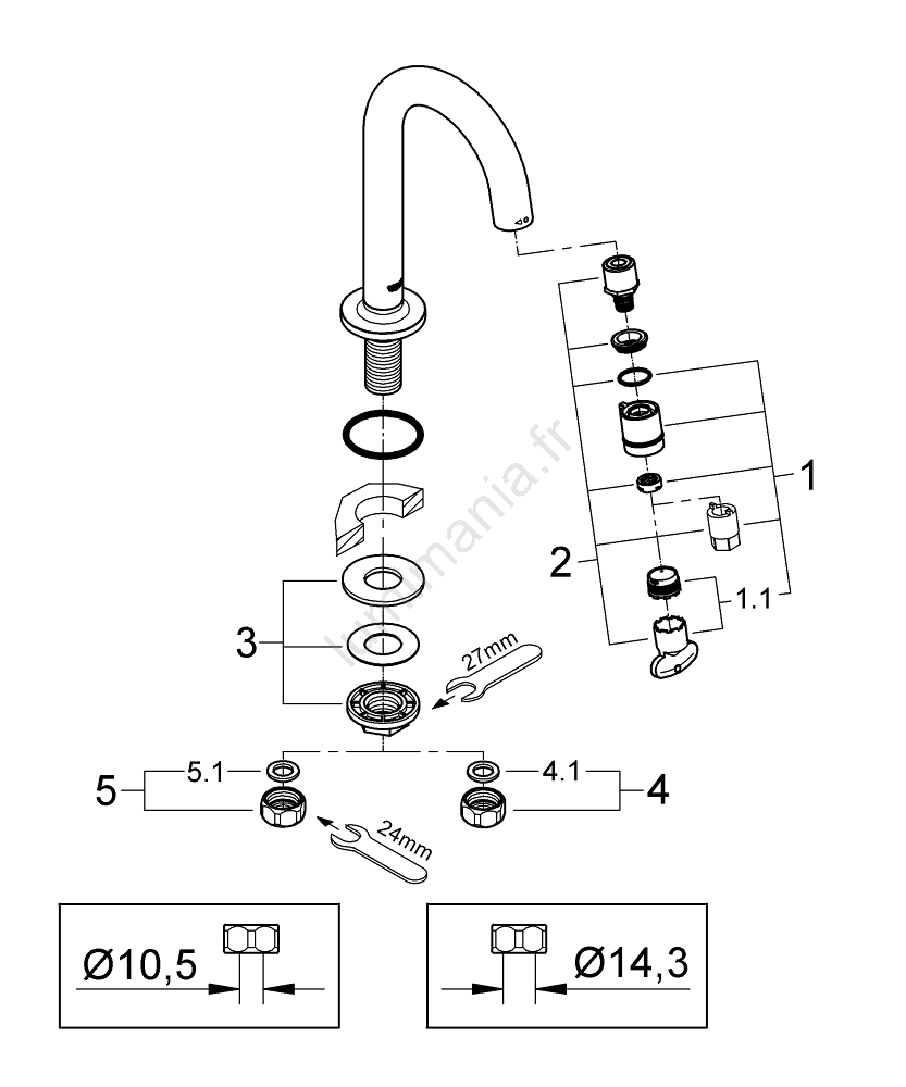 • Perçage de diamètre 10,5 mm pour compatibilité avec différents lavabos.