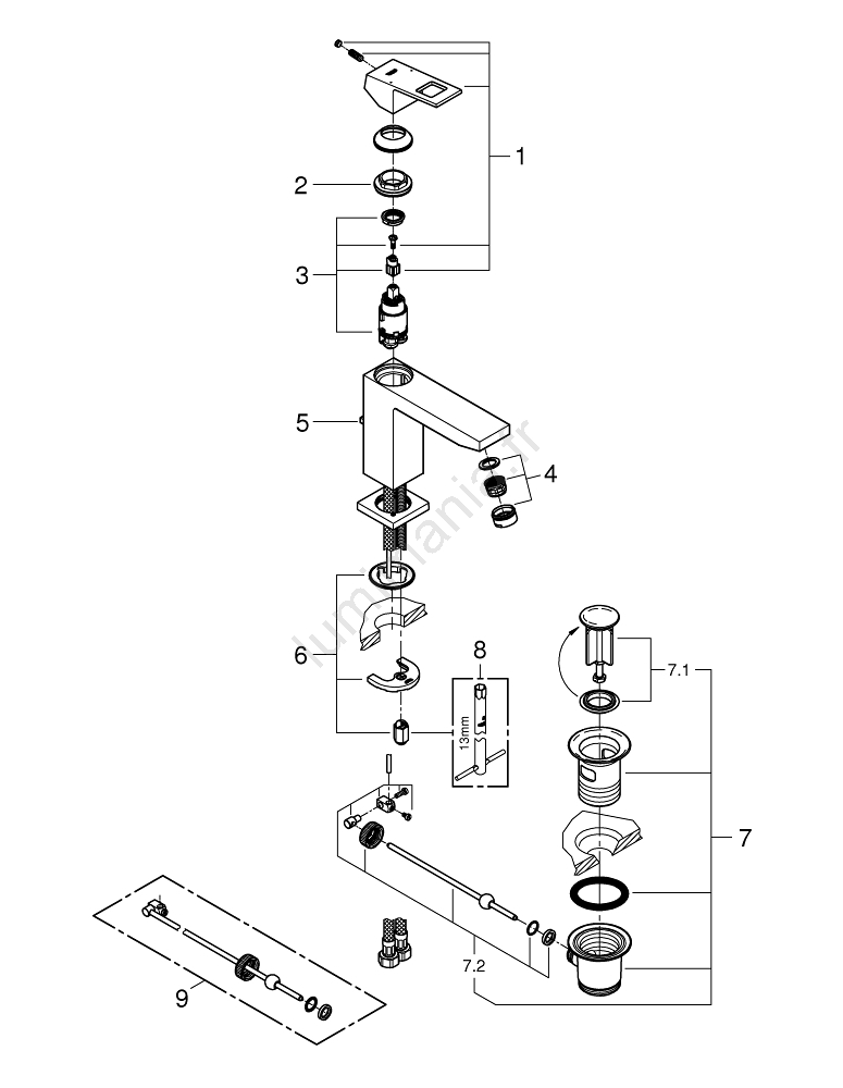 GROHE 23445000 - Mitigeur pour lavabo EUROCUBE taille M, finition chrome brillant