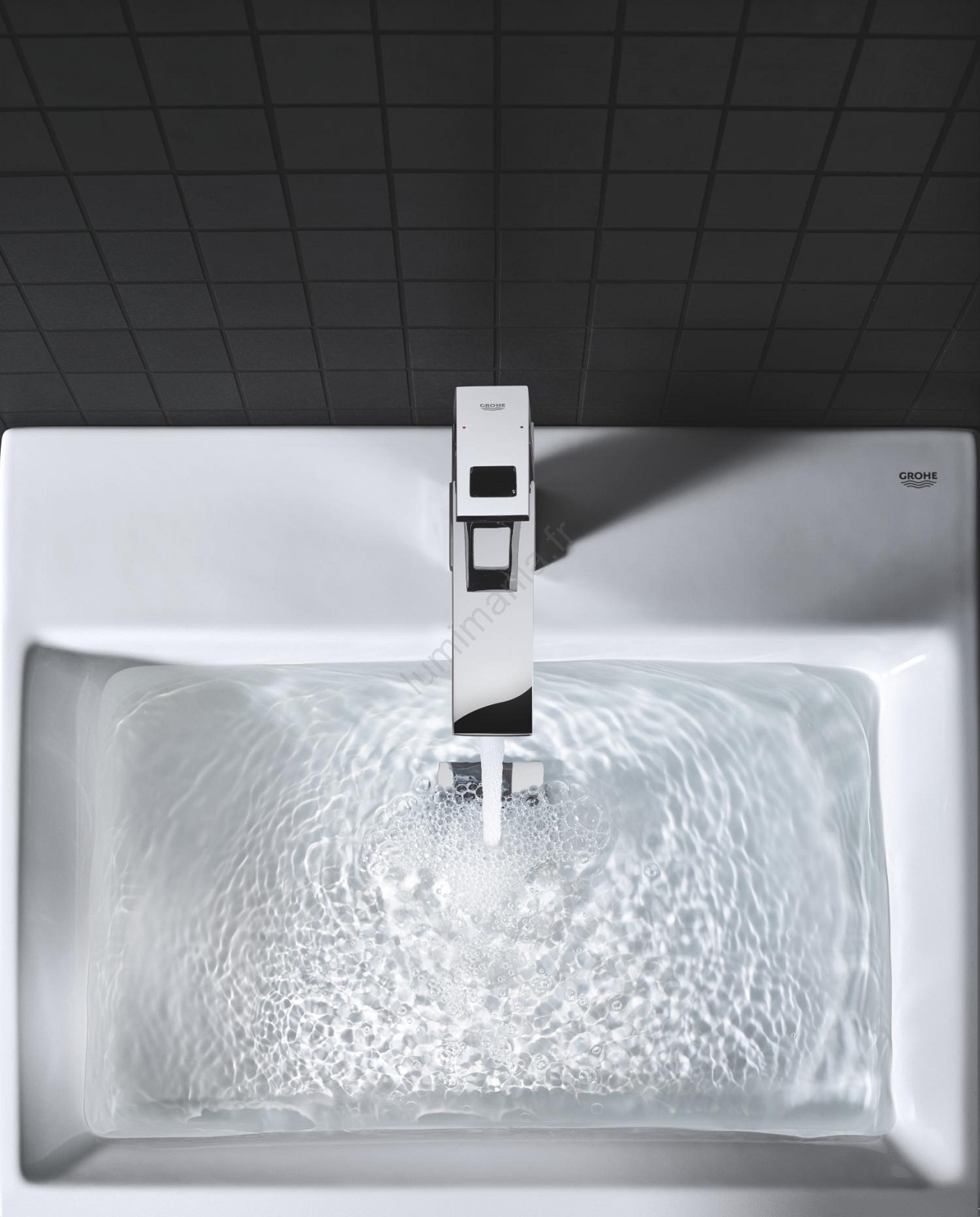 • Mitigeur monocommande pour lavabo GROHE Eurocube au design carré et élégant.