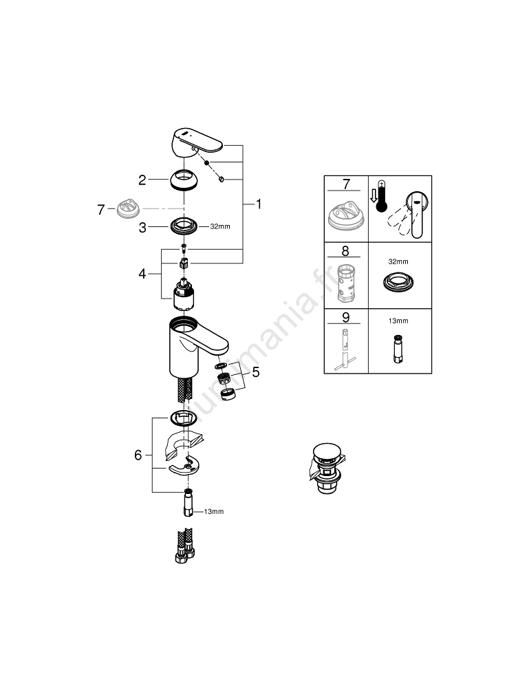 • Cartouche céramique GROHE SilkMove ES 35 mm avec fonction d'économie d'énergie au démarrage à froid.