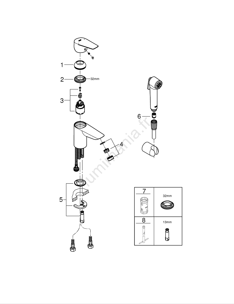 • Solution idéale combinant mitigeur de lavabo et douchette de bidet en un seul produit.