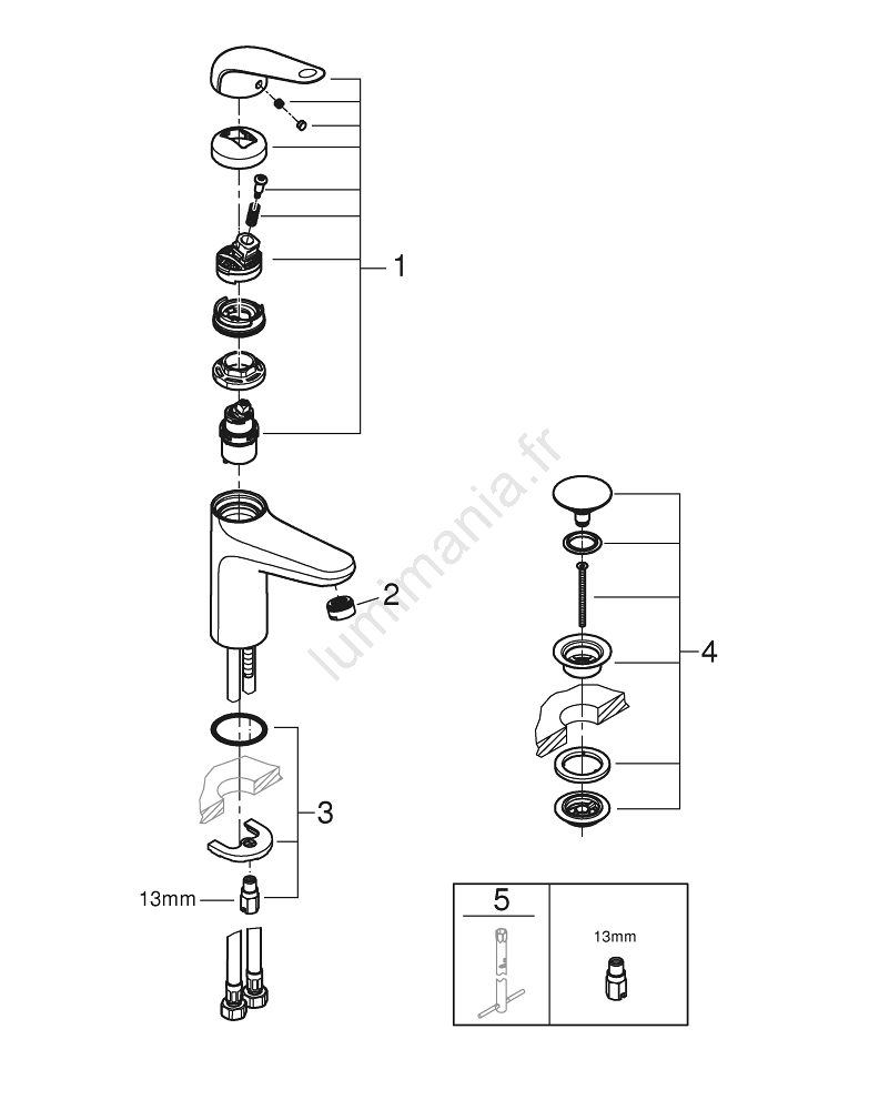 • Fourni avec l'outil GROHE QuickTool pour un montage rapide et facile.