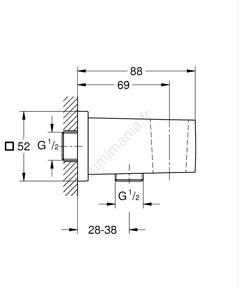• Coude mural avec support de douche intégré pour une solution élégante et fonctionnelle.