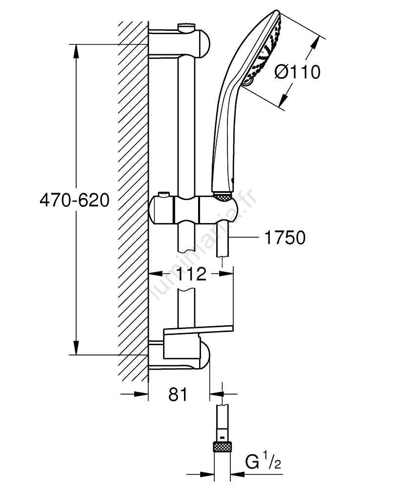• Barre de douche de 600 mm avec support supérieur réglable pour une installation facile.