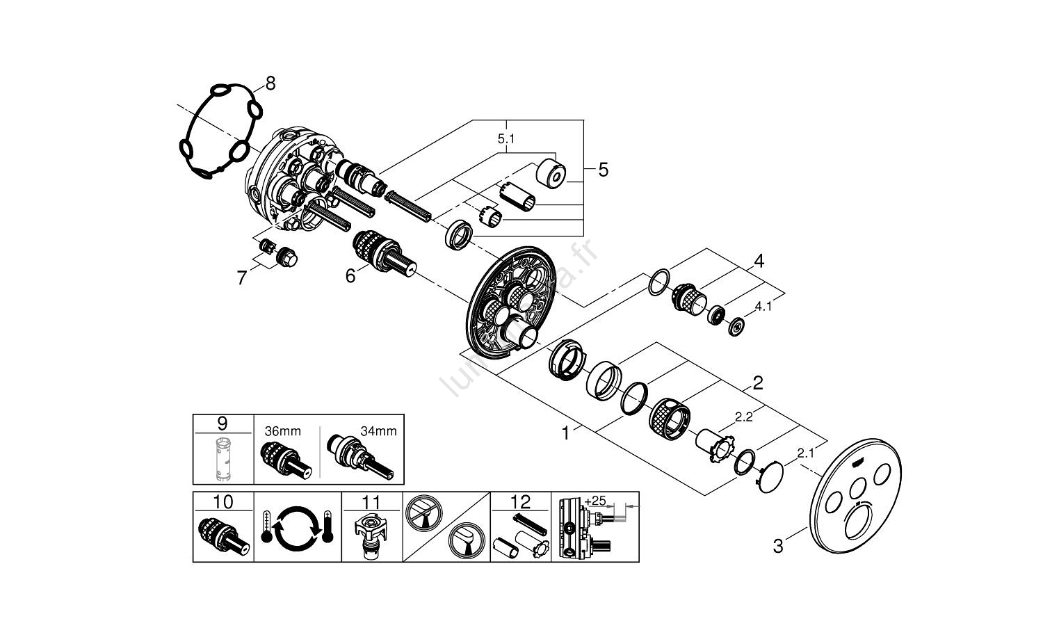 • Installation facile grâce au système GROHE QuickFix, qui réduit le temps de montage jusqu'à 50 %.