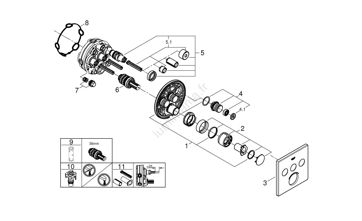 • Le kit d'installation n'est pas inclus ; il doit être acheté séparément. ([grohe.is](https://www.grohe.is/en_is/smartcontrol-concealed-mixer-with-3-valves-29149000.html?utm_source=openai))