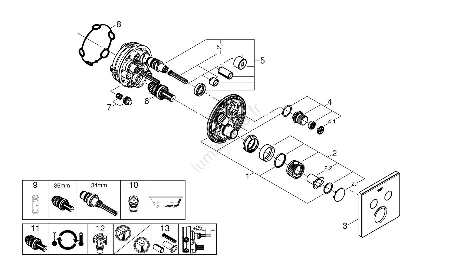 • Sans boîtier d'installation ; pour une installation complète, il est nécessaire d'acheter séparément le module encastré GROHE Rapido SmartBox (35 600/35 604).