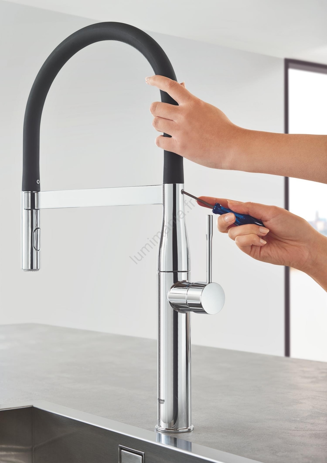 • Douchette professionnelle avec flexible de cuisine hygiénique GROHFlexx en santoprène.