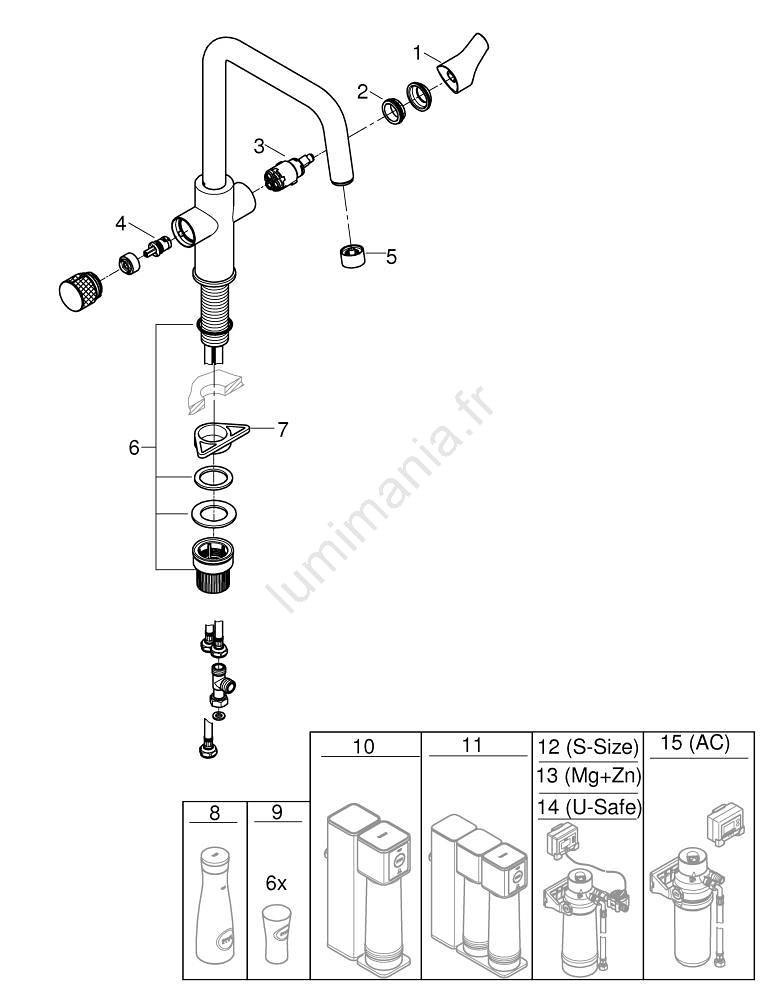 • Le mitigeur est compatible avec différents systèmes de filtration GROHE Blue, adaptables à vos besoins.