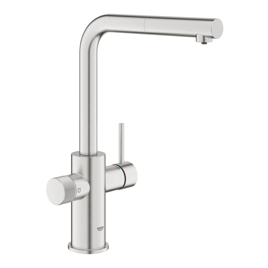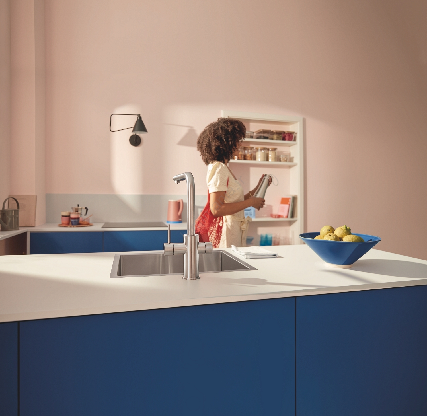 • Mitigeur de cuisine GROHE Blue Pure Minta avec fonction de filtration de l'eau.
