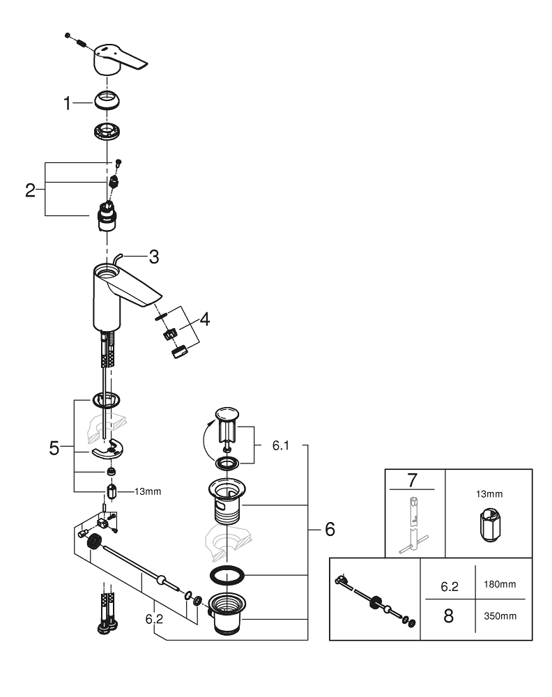 • Aérateur GROHE Water Saving avec un débit de 5,7 l/min pour économiser l'eau sans compromis sur le confort.