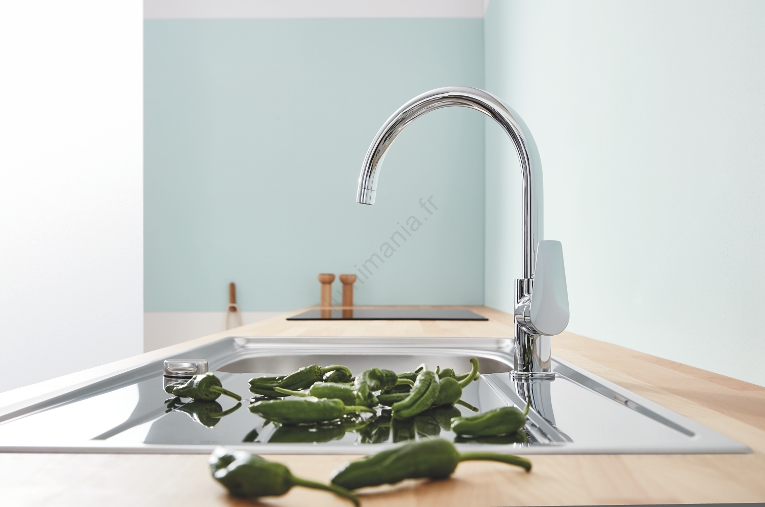 • Mitigeur de cuisine monocommande élégant à bec haut, pour remplir facilement de grands faitouts.