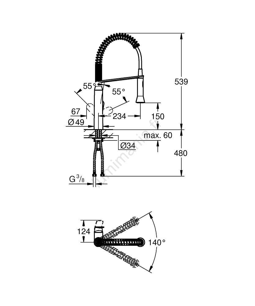 • Bec orientable à 140° pour une manipulation aisée et un accès optimal à l'ensemble de l'évier.