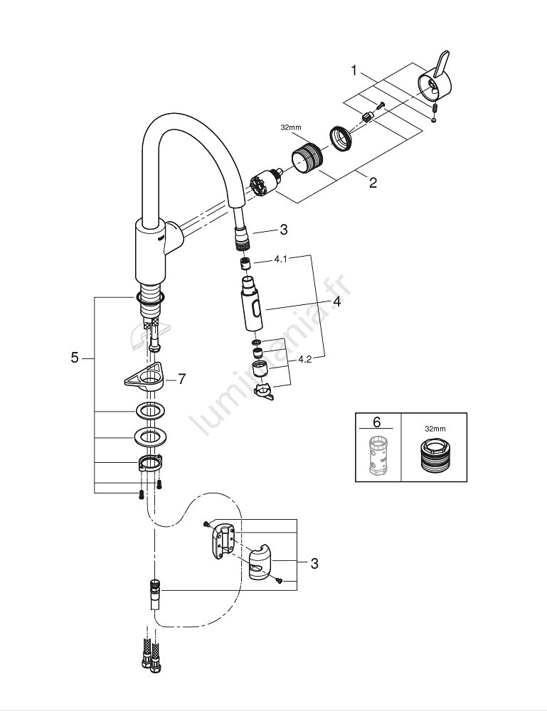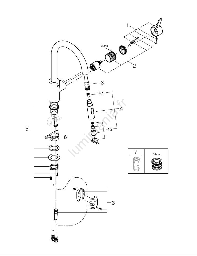 • Aérateur avec la technologie d'économie d'eau GROHE, débit inférieur à 9 l/min.