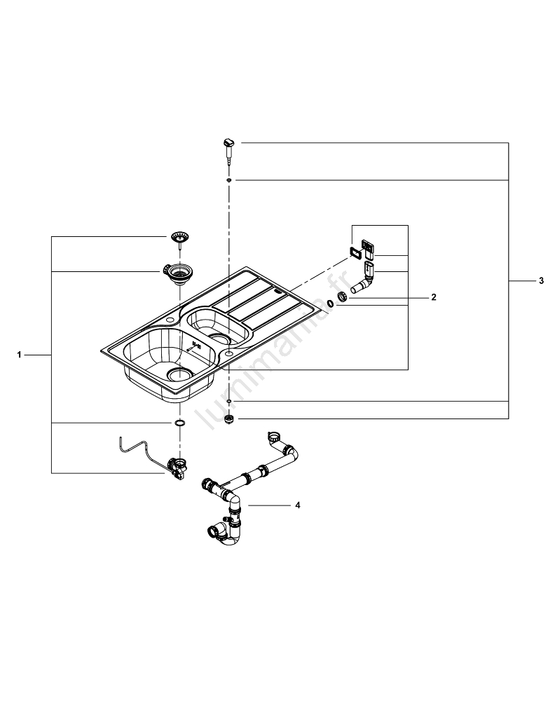 • Le pack comprend une garniture de vidage automatique à commande rotative, une crépine anti-débris et un kit de montage.