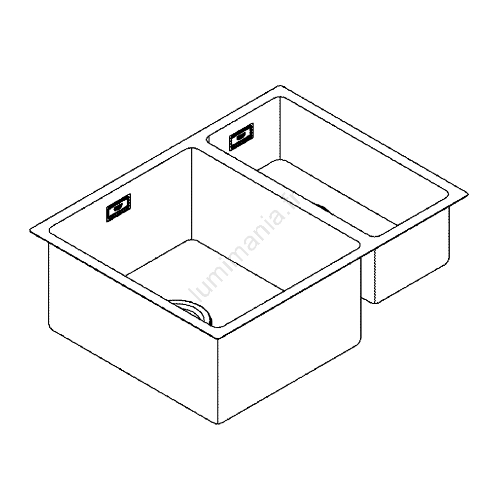 • Dimensions de l'évier 595 x 450 mm ; cuve principale 340 x 400 x 200 mm, cuve secondaire 180 x 400 x 140 mm.