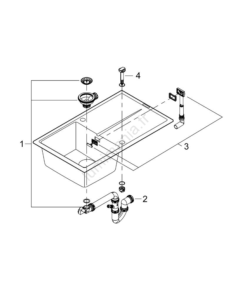 • Le colis comprend une bonde automatique à commande rotative, un ensemble d'évacuation, une crépine anti-déchets et un kit de montage.