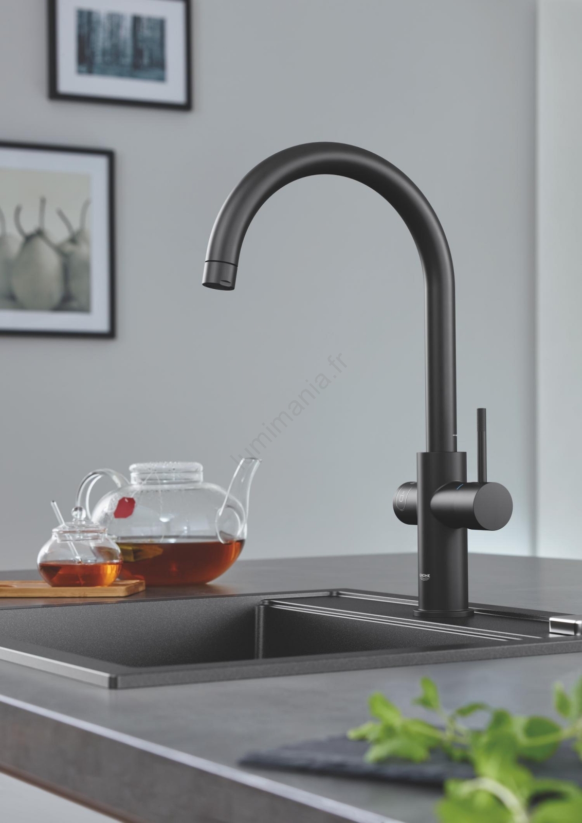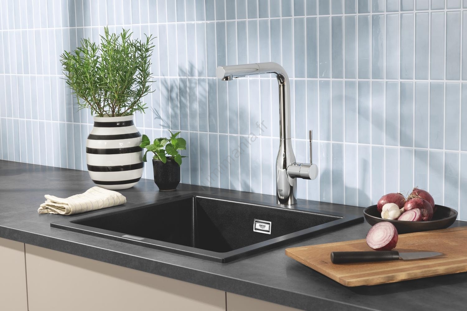 • Évier composite GROHE K700 dans une finition élégante Granite Black.