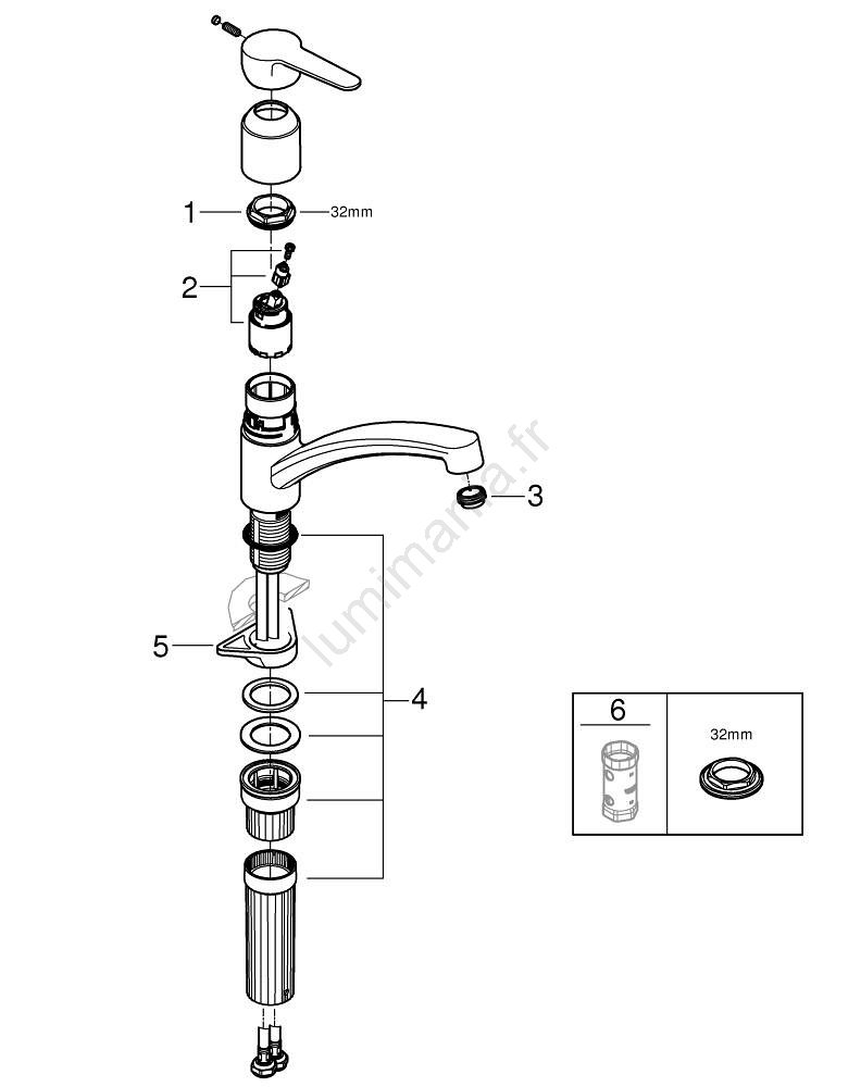 • Équipée d'une cartouche céramique GROHE Long-Life de 35 mm pour une commande fluide.