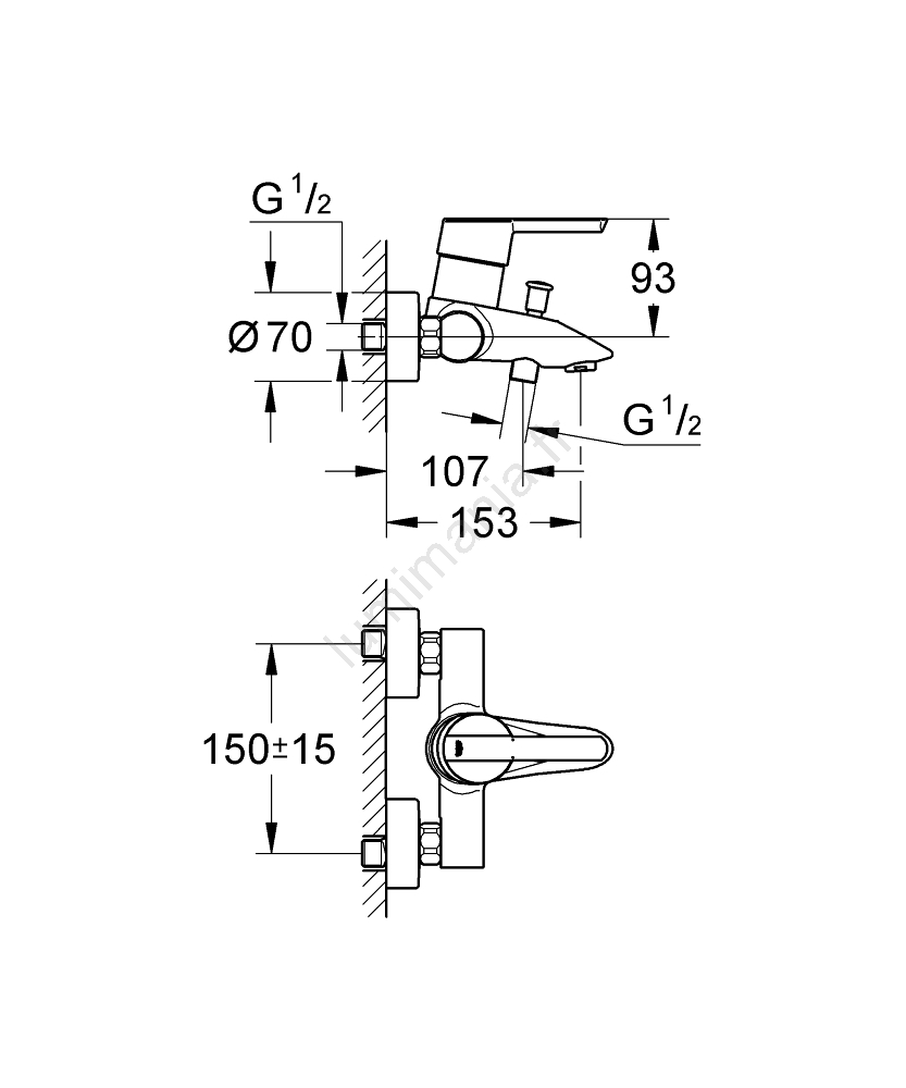 • Mitigeur bain mural à levier pour un contrôle facile.