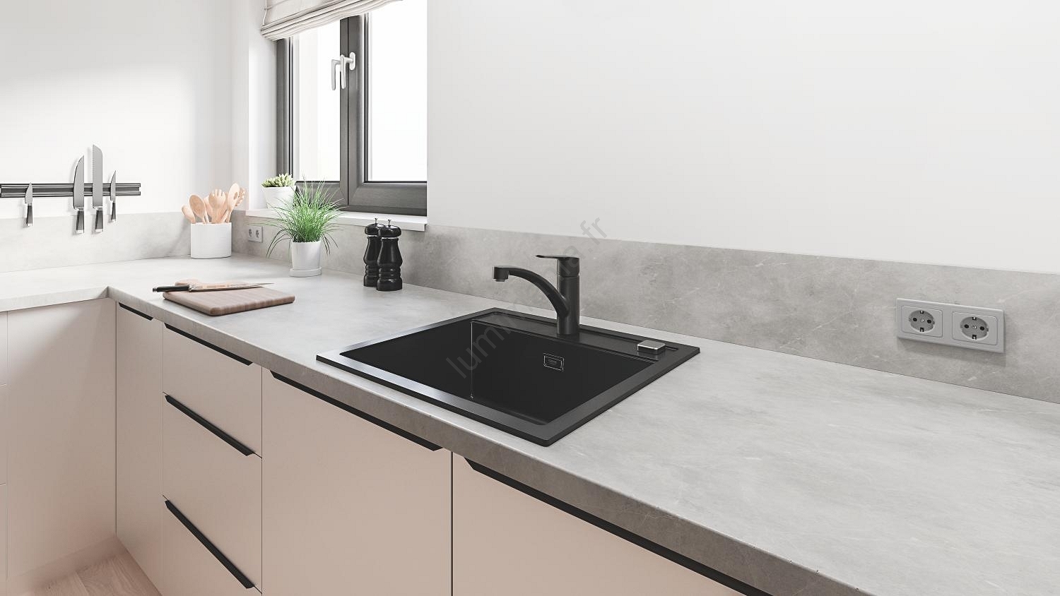 • Finition noire mate élégante pour une cuisine au design moderne.