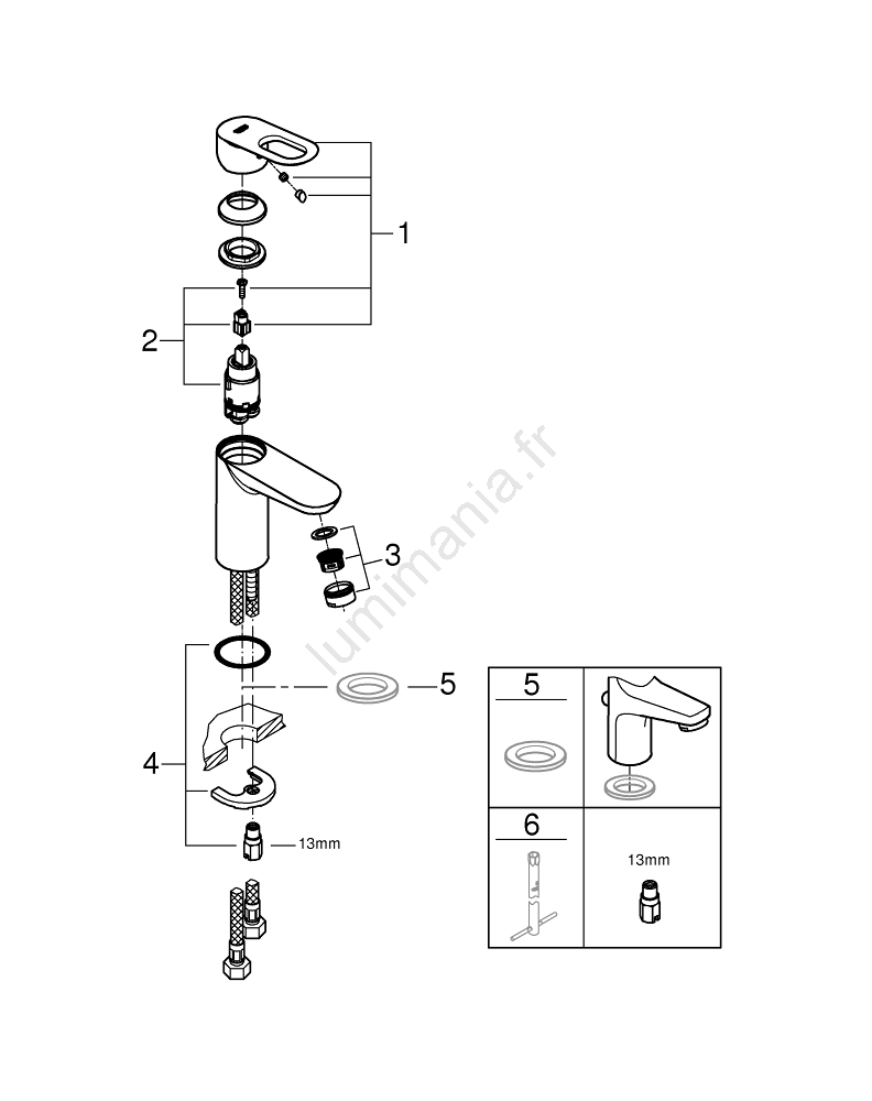 • Revêtement GROHE Long-Life pour un brillant durable et une résistance aux rayures.