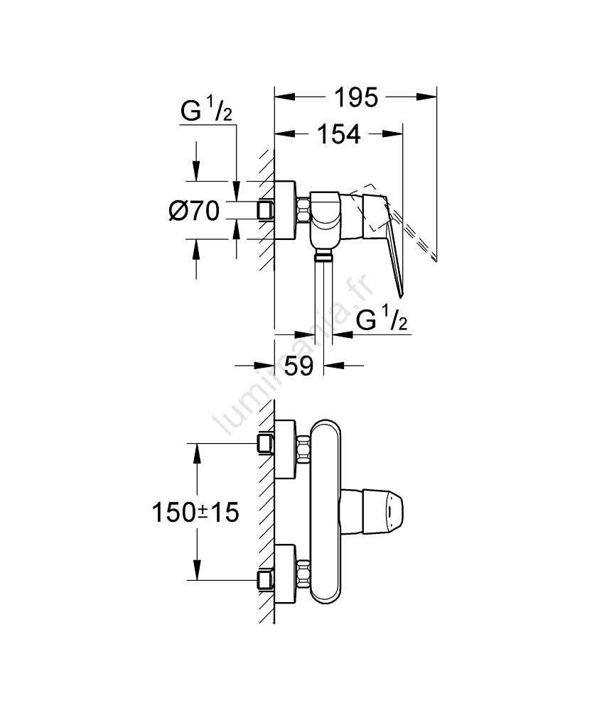 • Mitigeur de douche mural à levier pour une installation facile.