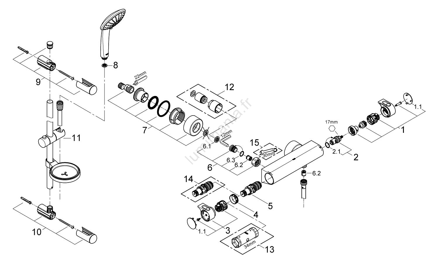 GROHE 34195001 - Mitigeur thermostatique GROHTHERM 2000 avec ensemble EUPHORIA 110 chromé