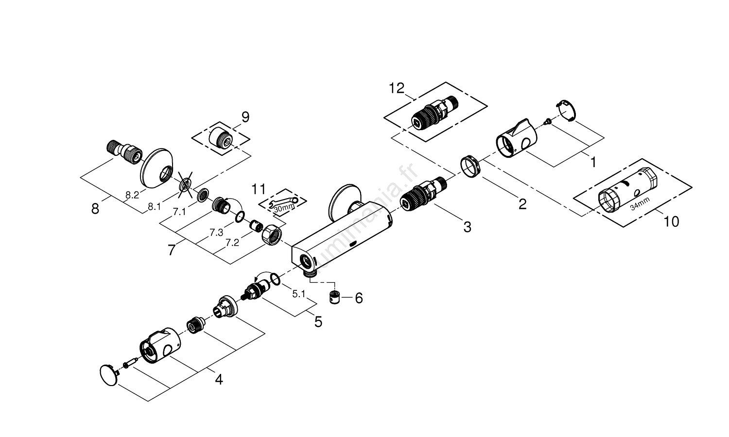 GROHE 34558000 - Mitigeur thermostatique de douche GROHTHERM 800 DN 15 chromé brillant