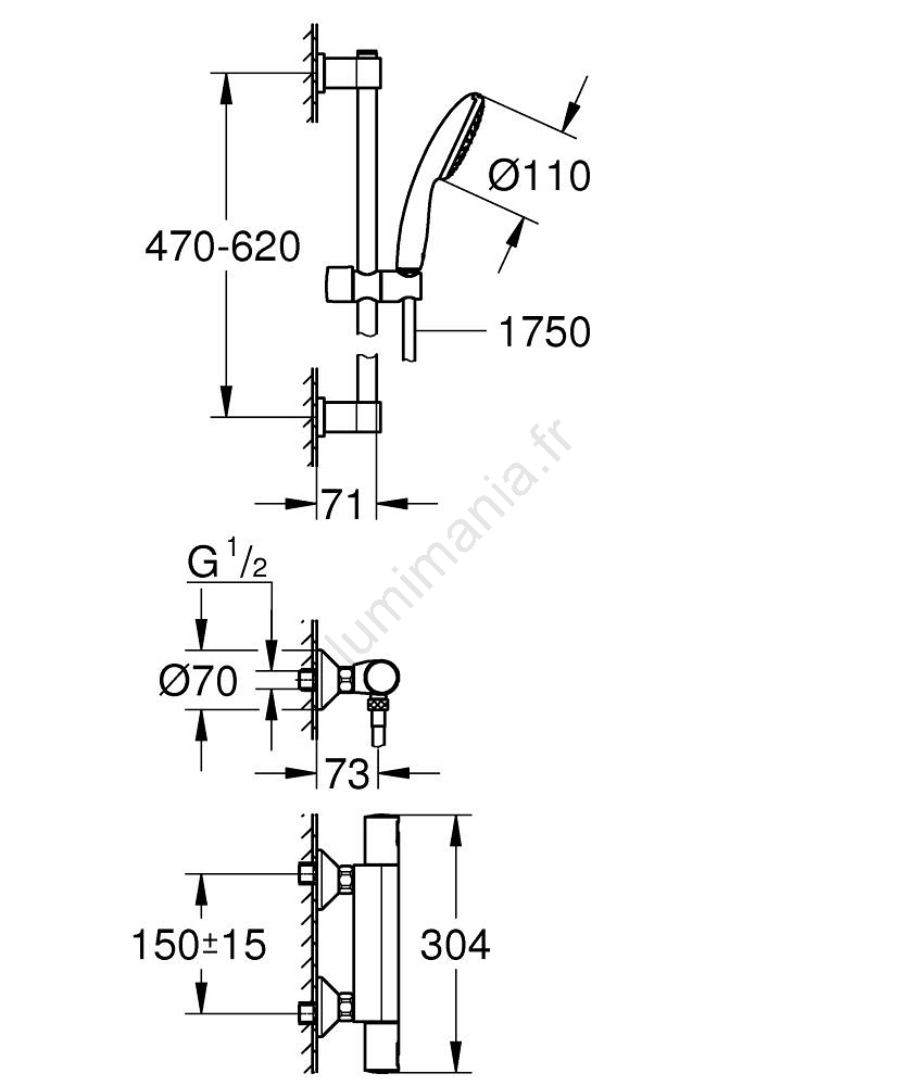 • Le pack comprend un flexible de douche de 1750 mm, résistant à l'écrasement/anti-torsion et facile à nettoyer.