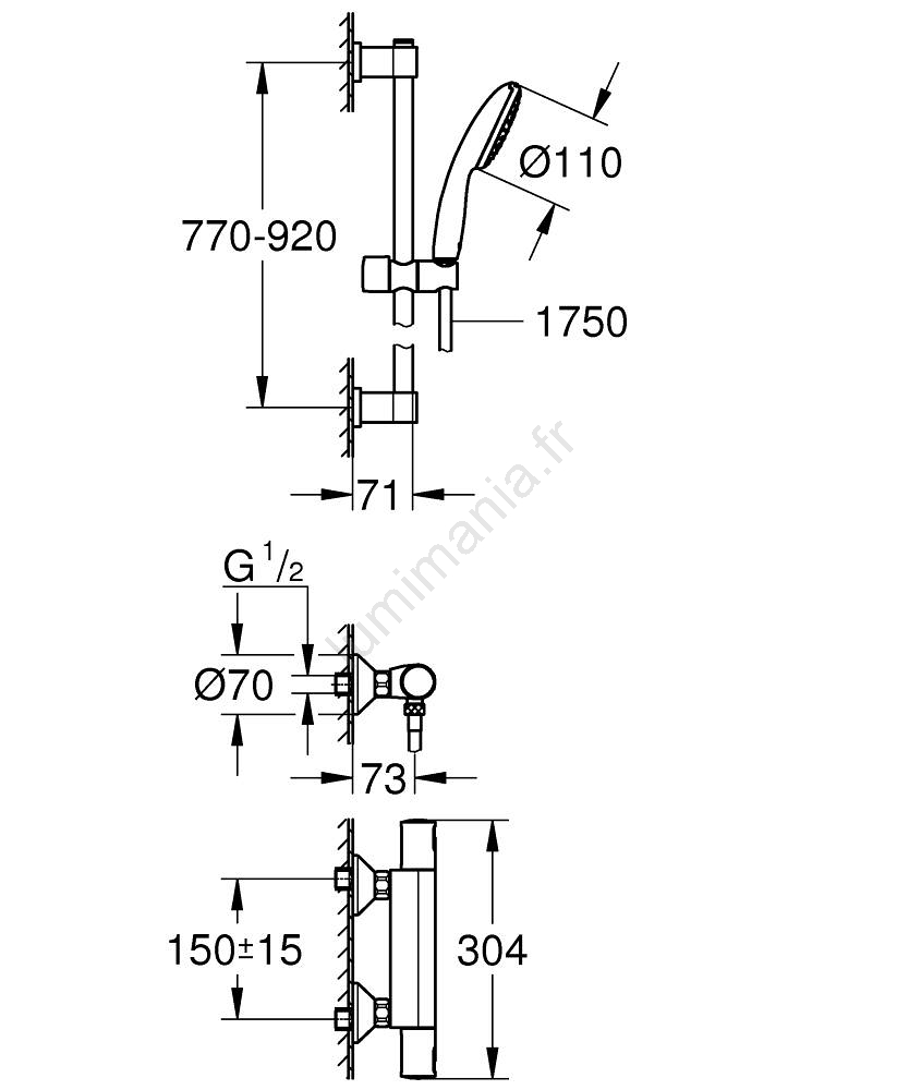 GROHE 34854001 - Mitigeur thermostatique de douche PRECISION START 900 mm chromé