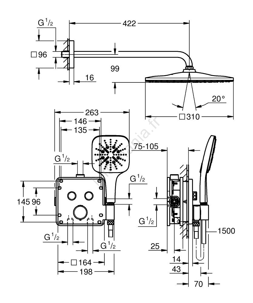 GROHE 34876000 - Système de douche PRECISION SMARTCONTROL 310 × 310 mm chromé