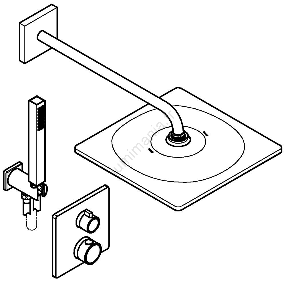 • Le kit complet comprend tous les composants nécessaires à l'installation, y compris le bras de douche et le coude mural avec support pour le pommeau manuel.