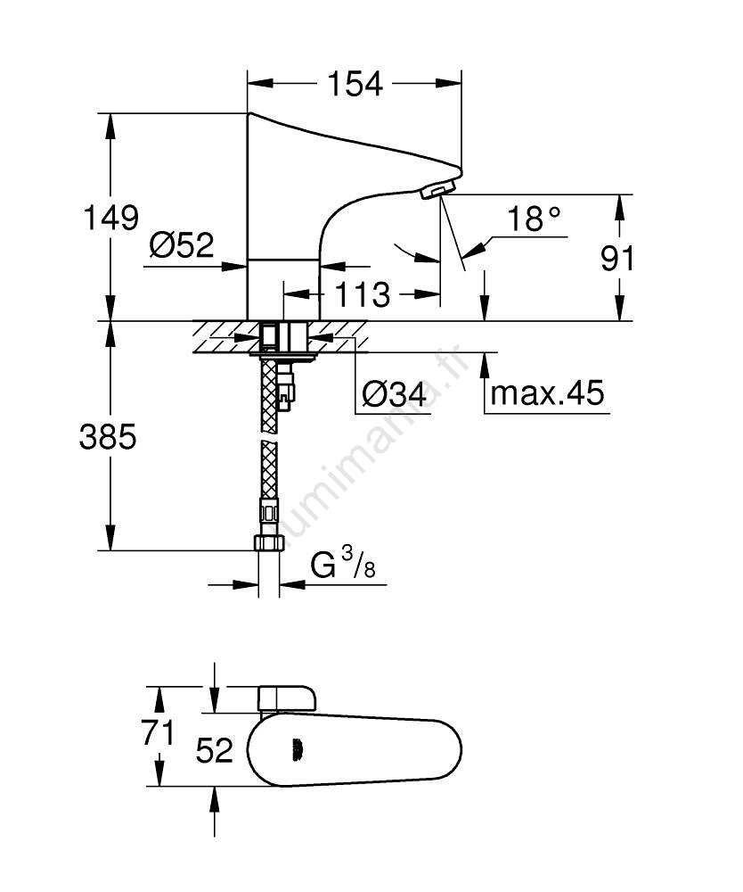 GROHE 36207001 - Mitigeur électronique pour lavabo EUROPLUS E DN 15 chromé brillant