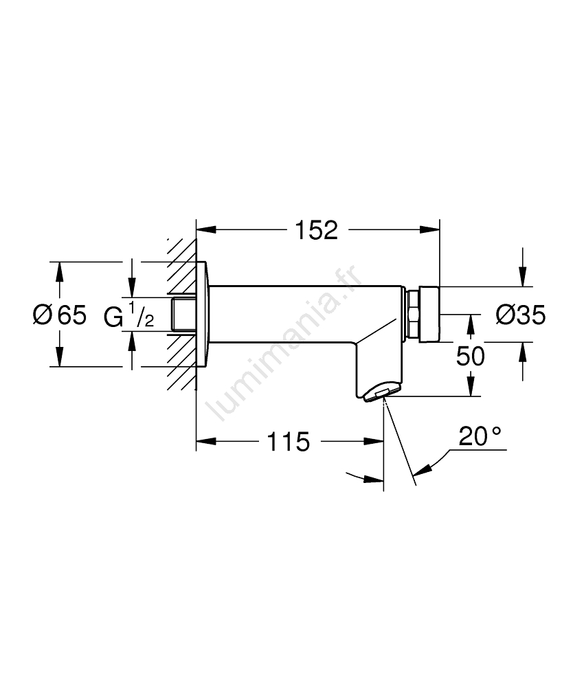 • Vanne murale auto‑fermante pour eau froide ou eau pré‑mélangée.