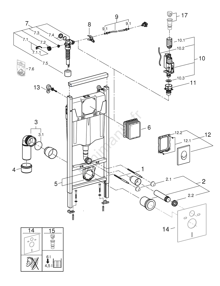 • Système d'installation GROHE Rapid SL pour WC suspendu d'une hauteur de 1,13 m.