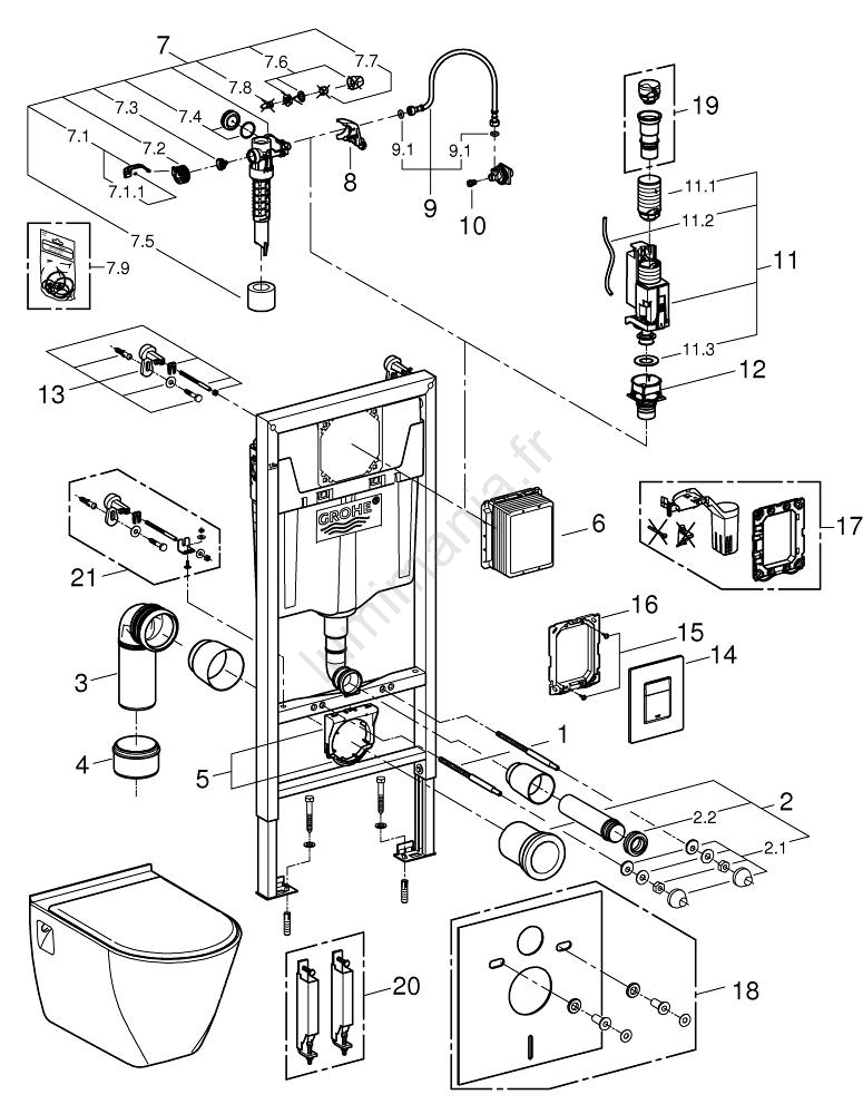 • Le matériel de fixation et 2 supports pour WC sont fournis avec le produit.