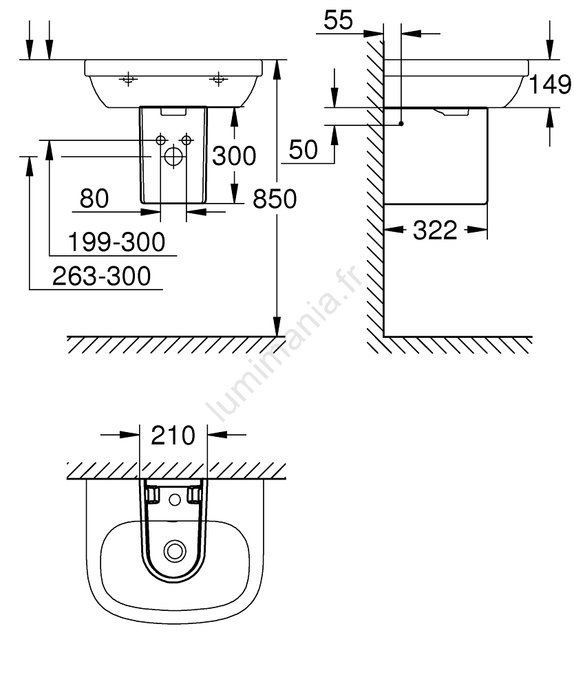 • Dimensions : largeur 210 mm, profondeur 300 mm, hauteur 322 mm, adapté à différents formats de lavabos.