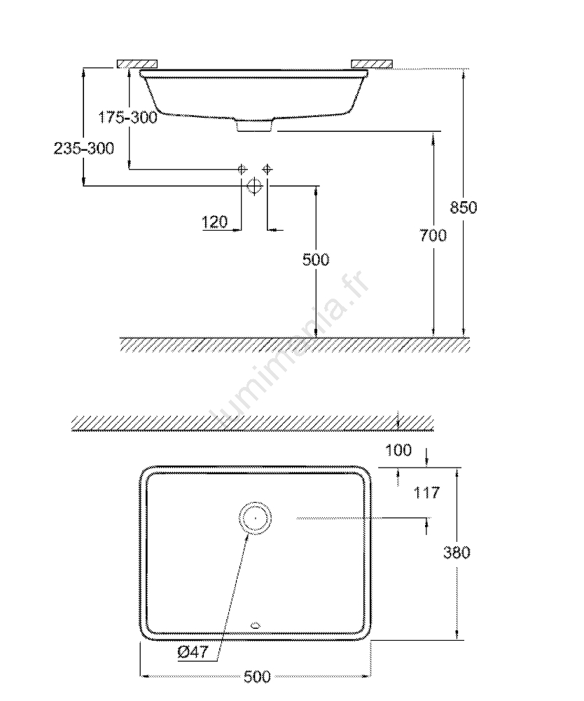 • Dimensions 492 × 370 mm, idéal pour les salles de bains compactes.