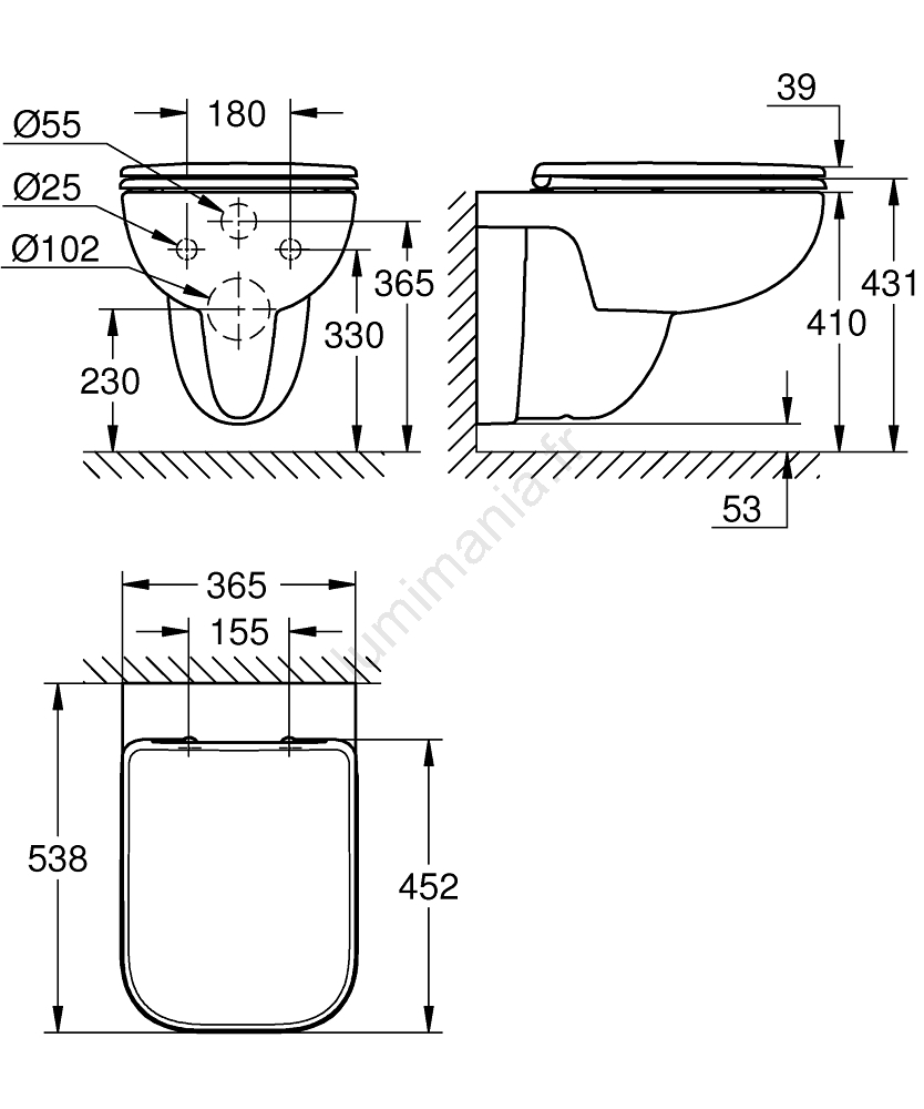 • Conception sans rebord (rimless) garantissant un nettoyage facile et une hygiène accrue.