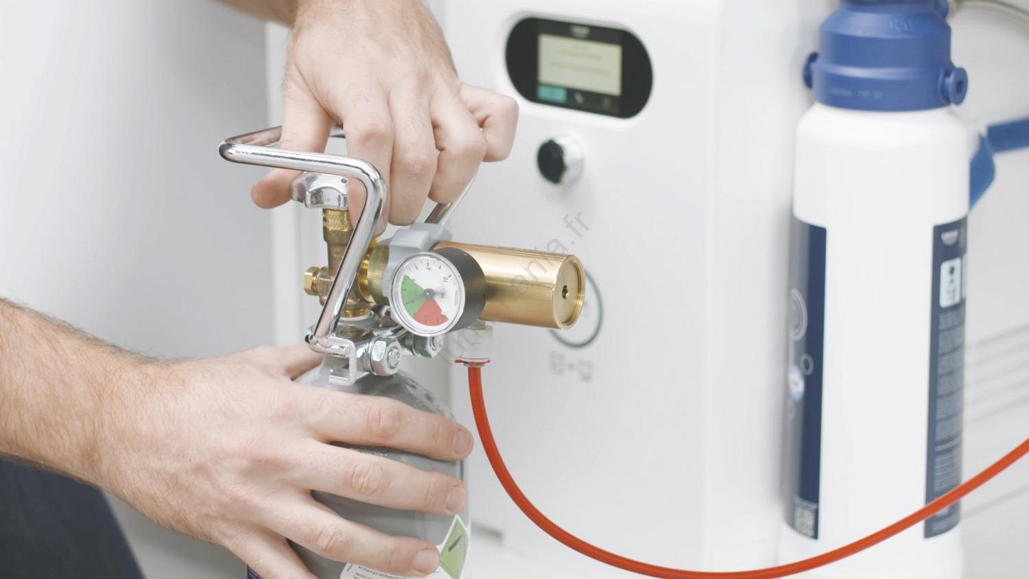 • Il fournit jusqu'à 350 litres d'eau pétillante via votre robinet de cuisine.