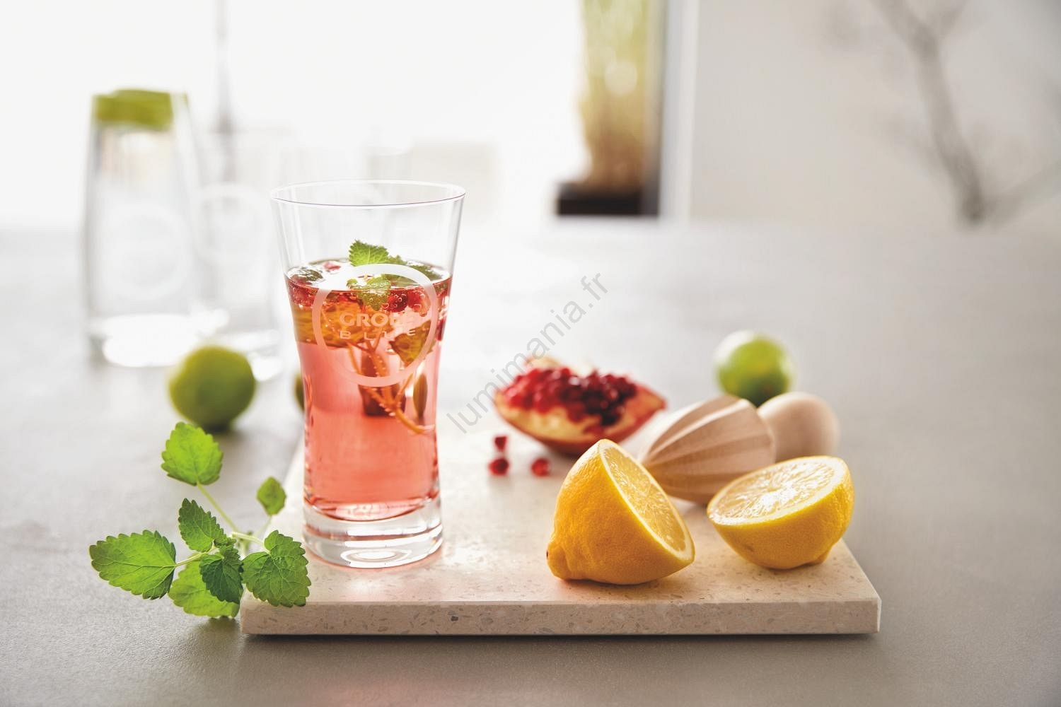 • Possibilité de les associer à la carafe en verre d'1 litre GROHE Blue (40405001) pour servir une plus grande quantité d'eau.