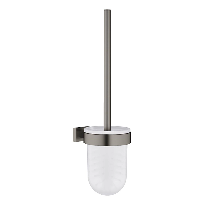 • Ensemble élégant de brosse WC GROHE Essentials Cube en finition Hard Graphite brossée.