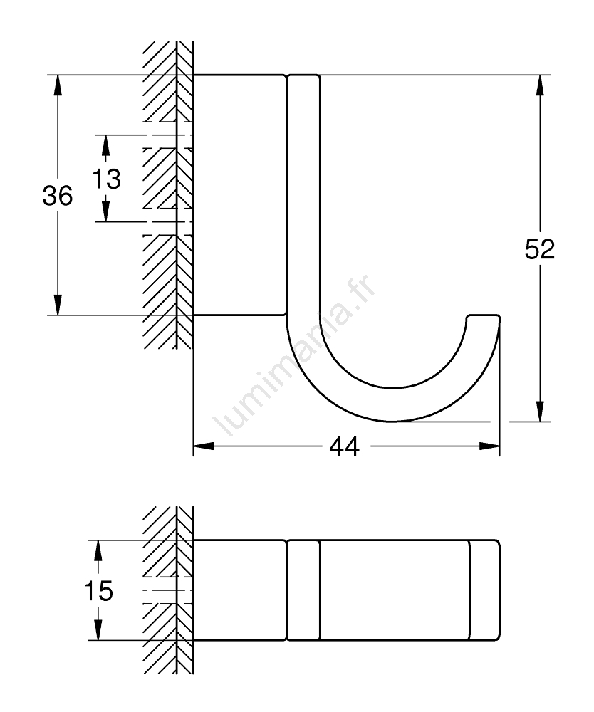 GROHE 41039000 - Crochet pour peignoir de bain SELECTION 52 x 44 mm chromé brillant