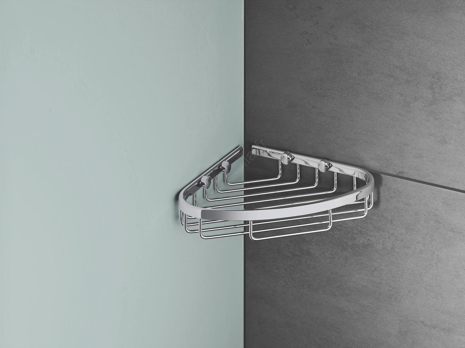 • Porte-savon en fil métallique pour montage d'angle, optimisant l'espace de votre salle de bains.